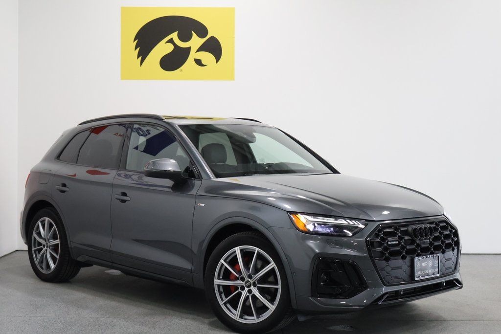 Daytona Gray Pearl Effect 2024 Audi Q5 e 55 Prestige S Line Priced below KBB Fair Purchase Price! Odometer is 3760 miles below market average! Adaptive Air Suspension, Audi Advanced Key, Audi Connect NAV & PLUS, Auto-Dimming Power Folding Exterior Mirrors, Bang & Olufsen Sound System w/3D Sound, Black Audi Rings & Model Badge, Black Exterior Trim, Black Headliner, Black Optic Plus Package (WSL), Black Roof Rails, Brushed Aluminum Inlays, Convenience Package, Darkened Headlights, Deluxe Pre-Entry Climate Control, Driver Seat Memory, Dual Pane Acoustic Glass for Front Side Windows, Head-Up Display, Heated Rear Seats, High-Gloss Rear Diffusor/Front Spoiler/Air Intakes, Leather/Dinamica Seats, LED Interior Lighting Plus Package, Manual Rear Side Window Shades, Matrix-Design LED Headlights w/Headlight Washers, MMI Navigation Plus, Navigation Package, Panoramic Sunroof, Park Assist, Perforated Leather Steering Wheel w/S Badge, Power Adjustable Steering Column, Prestige Package, Red Brake Calipers, SiriusXM w/360L, Sport Plus Package for Prestige, Top View Camera System, Traffic Sign Recognition, Ventilated Front Seats, Warm Weather Package, Wheels: 20" 10-Spoke-Star Design, Platinum Finish, Wireless Phone Charging Pad.